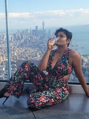 I honestly wish I could buy this jumpsuit. It fit like a glove! Now I am a very straight and narrow with broader shoulders (or inverted triangle shape). And I have no bust. Which usually there's too much space and I'm falling out but this felt tailored to my shape. Definitely need a friend to help zip up and down ;) But this pattern will turn heads! I got so many compliments. The print and flared pant gave it just enough of a retro but modern vibe that totally made me feel like a timeless movie star for my birthday.