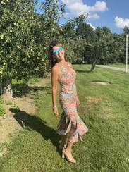 Wore this dress for an outdoor wedding in July- it fit perfectly and I got so many compliments! Colors are slightly different, but I loved this dress!