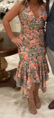 This was my back up dress so I didn't end up wearing but I'll rent again to wear this one. It made my decision tough. This dress is sassy but comfortable. Colors are bright and gorgeous! Prettier in person!!