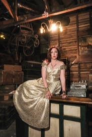 Wore to opening night of the SF Opera. Wonderful material, heavy weight and excellent cut and fit. Looked great in pictures and coordinated with my family’s outfits. The gold color somehow came off all over the car seat and my jacket, but not a big deal. Loved the dress!
