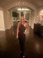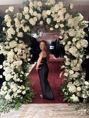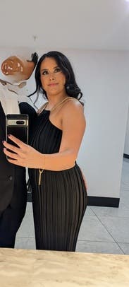 Great dress! I wore it to a black-tie wedding and it was perfect—comfortable, soft, and elegant. I initially tried a size 8, but the waistband isn’t stretchy and didn’t fit. Size 10 worked better, though the chain straps were slightly big. Still, it was a beautiful dress and I would definitely rent it again.