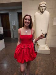 Color is perfect. Looks like a million bucks. Rent if you need a red dress!