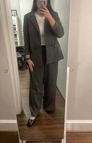 Wore both pieces to the look. Loved the flare in the pants. Jacket is oversized but just right. Really liked the gray while wearing black and gold accent pieces. Will rent again.