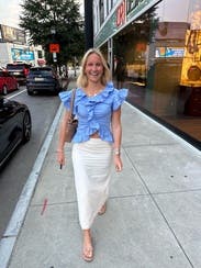 This fit like a glove and has a fun flair and flattering neckline. Wore to a tennis event.