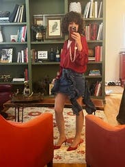 First off, I’m obsessed with Aknvas on the whole, so you know when I saw this fit I had to rent the whole thing. It’s giving 1980s western meets 2023 New York and I’m here for it. Definitely size down on top and bottom. Also as another reviewer mentioned the skirt is heavy as hell. Overall, could not recommend more highly. Slay rating — 10/10