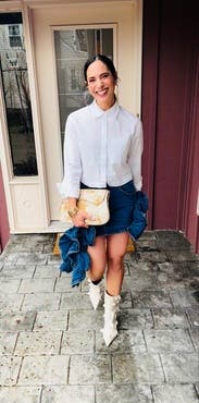 Loved this skirt. The denim is on the thicker side but it’s totally worth it. Got so many compliments
