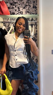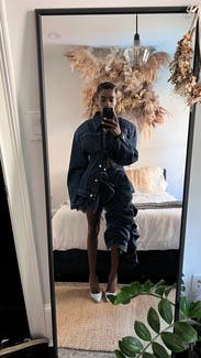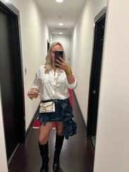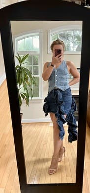 I went to an event and this two piece set was everything and more. The skirt wasn’t the perfect fit but with a belt it was great for the one off occasion. I expect skirts to be bigger in the waist to hopefully get a bit more length (5’9 girlie) but with the weight of the additional denim details I was in need of a belt to hold the skirt up. Something to keep in mind but still such a great piece!