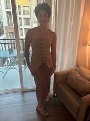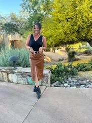 I went to a mom creator summit and the theme was southwest chic one night I thought this skirt with a body suit would be perfect and it was