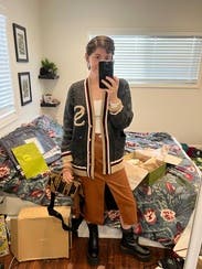 Wore with tall burgundy boots and cream blouse with puff sleeves