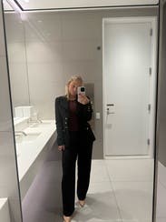 Really liked this one. Wore the blazer a couple times. It’s longer than I thought, but worked great for my meeting. Has nice quality buttons. Fit perfect!