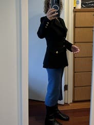 Wore this to work and paired with a bodysuit to rock out a concert. Loved the real pockets and gold buttons!
