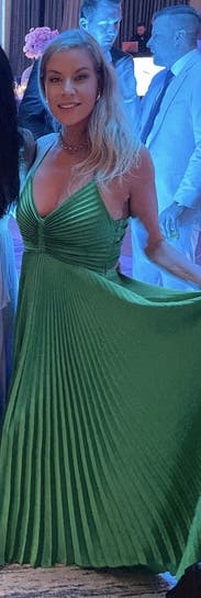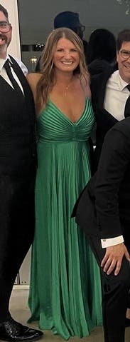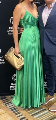 So many compliments. A stand-Out in green at a black-tie event. The one thing to know is that the skirt with all of the pleats and length requires an extra hand to lift it when going up and down stairs. Worth it though.