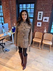 It is super cute. And cute with the skirt. A little bulky but I think that’s the style. A lot of fabric if you’re super petite, but cute nonetheless.