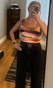 This was so well made and fun to wear! Tons of compliments and my mother even commented on the quality of the crochet. Because I have a chest it didn’t really fit me long enough to not have it wear like a crop top. So I’d initially thought I’d wear the set for work but that didn’t work.