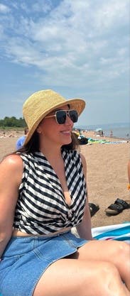 Absolutely love this top! The material is perfect for vacation, light, comfortable, and really flattering. The neckline and length are great, and it pairs perfectly with white shorts. I rented the matching skirt but ended up not wearing it. There’s a small button/snap to keep the neckline closed, but it wouldn’t stay for me (larger chest), though it wasn’t noticeable at all. I loved it so much I actually considered not returning it!