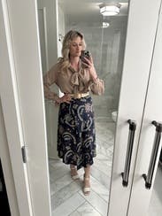Easy skirt to wear and style, very flattering. Wore on a girls trip and loved it. It was a little large in the waist but I made it work, would size down if I rent again!