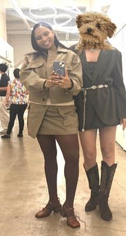 The fit is true to size, and the mini length is exactly what I needed as someone on the shorter side—it's super flattering. It is wool and while it has lining, the exposed parts that make contact with your skin can feel a bit itchy if you're sensitive. The functional pockets are a standout feature, deep enough to actually be useful for my phone or a lip gloss. There are lots of buttons on the inside in order to fasten the skirt and the belt on the outside is more decorative. All in all, it was a great rental and glad to have paired it back to the matching jacket.