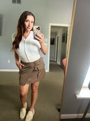 I am obsessed with this skirt!! I am usually between a 0 and 2 but went with the 2 because i have a bit of a booty and shirts can be tricky. It’s perfect! A little bit of a mid to low rise so very of the moment and perfect for fall. Love!!