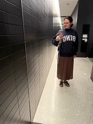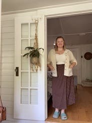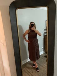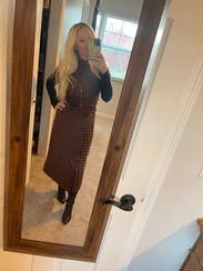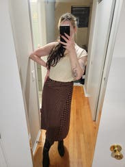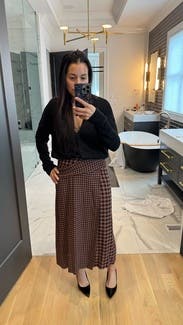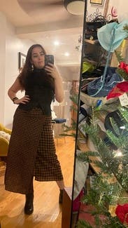 It’s giving pilgrim. First of all this thing was huge I had to safety pin it in the back and then after I ate thanksgiving dinner it was still huge. I wore it with the matching top And the top was cuter than the skirt. My mom was trying to use this photo as the Christmas card????? Not one of us looks good in that picture so the outfit did not make the cut