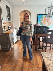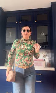 This top can be dressed up or down. The print is really fun. It’s on the thinner side so don’t expect it to keep you warm.