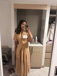BUT SO CUTE! So many total strangers stopped me on the street to tell me how beautiful this dress was. And it is a stunner. Pros: 1) doesn’t wrinkle easily!!!! this is huge 2) a great length, plenty long - almost a maxi - I’m 5’8 (shorter folks might find it too long) 3) zipper-free! 4) cute chest pockets (which also act as nipple covers - see cons) Cons: 1) fabric is only one layer for the whole back of the dress, and it’s quite sheer. the fabric - a crosshatch-textured thick polyester - clings to your body in an odd way so even a “no show” flesh-colored thong was super obvious. I wore nude shapewear shorts to feel more covered. I don’t wear bras, but if you do that will also be very obvious. There’s also an RTR tag sewn into the back of the top, which because it’s sheer, is visible! I attached a pic. The front has multiple layers of fabric and chest pockets which cover the nipples if you’re braless. 2) no side pockets! 3) a touch small on the waist - I’m a pretty consistent 2, and if I was even just a little bloated I could button the waist but it pulled and didn’t look nice. Fit fine everywhere else though. If I was to purchase or rent again, I’d get a 4.