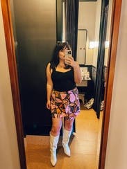 Wore this out a couple times. Initially tried without a bra but I felt like it was SO stretchy there was potential to flash, so I wore with a dark colored bra intentionally showing a bit. Very comfy and flattering with high rise shorts or jeans!