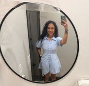 Loved this dress and the cute cut and the tie in the back that snatches your waist in but it’s too short to wear to work. I wore it out with a cute top under and unbuttoned somewhat