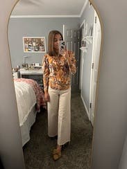 Such a perfect top for spring and summer. Lightweight, which I wasn’t necessarily expecting based on the photos. Very comfortable and a lovely neutral color palette. I wore it to work in this photo but I also wore it to a dinner party with jeans, ballet flats and some fun earrings!