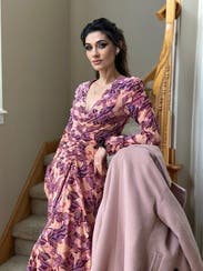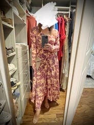 The color surprisingly looks a bit dated to me and the cut of the dress hut mid-shin which wasn’t flattering on my body. The sleeves also fit a bit weird on my with bunching on the top of my shoulders. Hope it looks better on someone else! Not for me