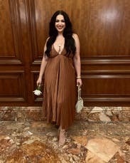 I loved that this dress was so flattering on top but loose on the bottom. It lets you relax and enjoy the party! The bronze color is as beautiful as it looks in the photos.