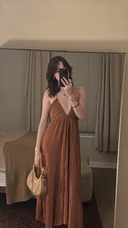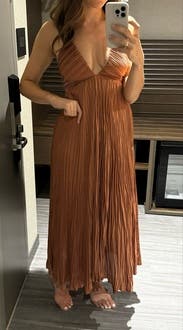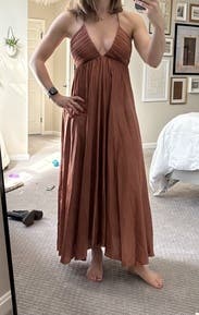 Gorgeous dress! Fit perfectly. Didn't wear or need a bra, probably best suited for smaller chests. Wore for my birthday dinner, felt elevated and special without being over the top. Loved the color, different and flattering.