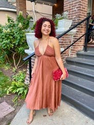 The color, the fabric, the flow, it was all perfect! I loved wearing it to a fall wedding and got compliments all night!