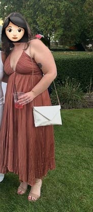 This was a last min switch from my original dress and I’m so glad I got this. Dress was perfect for a late summer Newport, RI wedding. The dress was free flowing in the wind and the back adjustable straps were great to give a little bit more way. I don’t have a big chest and it worked out excellent for me. Thank you RTR for overnighting this option for me!