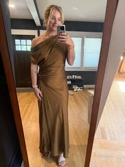 This dress made me feel like a modern-day Grecian goddess! The draped one-shoulder design is effortlessly elegant, and the fit was just right—flattering my curves while allowing for easy movement. The rich bronze hue gives a regal touch, and the fabric flows beautifully. Perfect for a formal affair, and I received endless compliments! If you love timeless, sophisticated glamour with a touch of drama, this is the dress for you. Pair it with gold accessories to complete the goddess vibe!