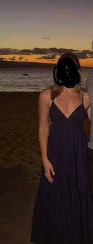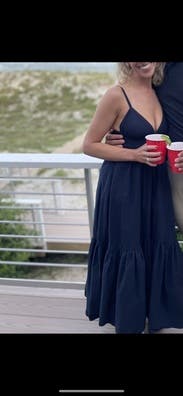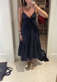 I wore this a few times - to dinner & to a day time event. It was so comfy and easy to wear (boobs stayed in!) and the cleavage and back elevates what would be a simple navy dress.