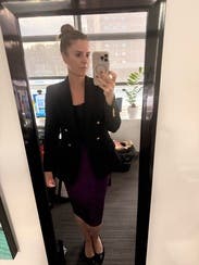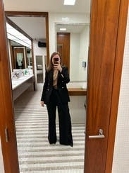 Fit was so flattering and comfy. Would have bought it if it wasn't so expensive. Typically I select monthly rental pieces that are different or add a pop of color, but I'm glad I ended up trying this one out because it was worth it (worn for a long conference day). Looked great on stage and received lots of compliments. Last but not least, have to mention: the amazing and practical pockets!!!