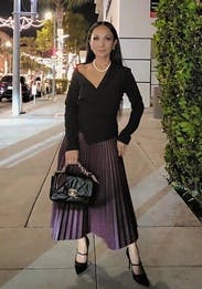 This top was sophisticated. It showed more shoulder than expected but it worked. The heavy fabric added to the look, and the cinched waist was flattering.
