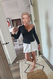 I couldn’t get this one to fit in a way that looked like made sense. Definitely needs a cami or bandeau underneath if you’re going to leave the house. Feels like more of a jacket vs a top.