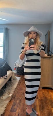 Dressed up & down with shoes and bag, love the fit, nice placement for the stripes, would rent again