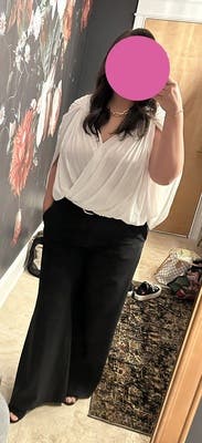 I love this modern yet elegant style top! Material is so soft, light a little see through but perfect for my need. I will rent this one again for sure. Didn't want to give it back. So many compliments.