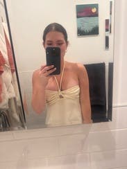 Wore out to dinner. Very cute and got compliments, but definitely a hair too tight for me so wasn’t the most comfortable. Would recommend sizing up if you want a bit more breathing room! Would rent again in a 4.