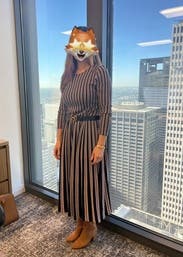 Comfortable and sophisticated looking. Pairs well with boots and/or heels. Runs big.