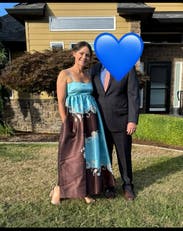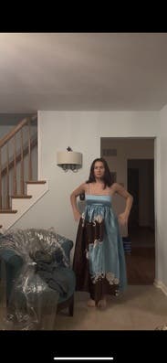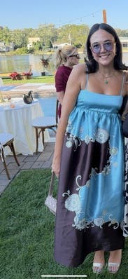 I got compliments all night on this dress from the moment we got to the wedding! Different from what I normally go for and did not disappoint. Because of the tie back I got a smaller backup size just in case my normal size hung a bit looser and I ended up wearing the smaller size. If you’re thinking about this dress to rent I’m telling you just do it!!!
