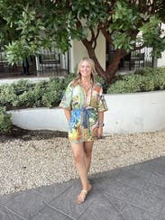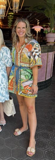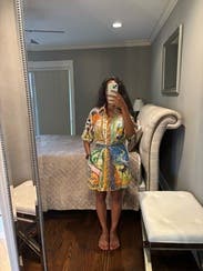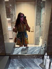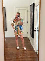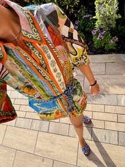 The print gives luxury and the line makes it so breathable. Loved it — so so many compliments. It is short, but with all the skin covered up top, still classy