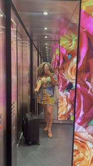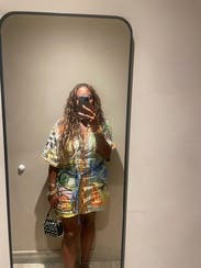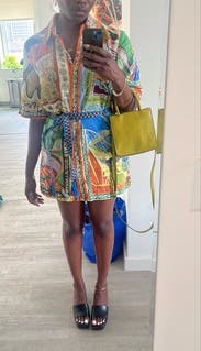 Had this on my list all Summer, and loved wearing! TTS, looks so chic with the belted waist, beautiful colors and graphics, and chic pockets. Perfect for warm weather, work, parties, or going out; easy to dress up or down! A Must-Rent! ❤️💕 Gave one less star because the material isn’t as bold as pictured, but it’s still outstandingly beautiful and I received the kindest and most wonderful compliments wearing to my Connective Strength 💚🦓🫶🏼 Board Meeting & Support Group.