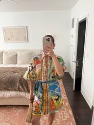 I loved this dress so much. Felt rich. I wore it a bit oversized but liked how it fit with the belt. Wore out and to the pool. Rent it!