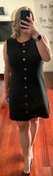Wore to work with a blazer and out to a show! Not too short for work in my opinion, I’m 5’9” and got the size 8. Slightly tight just over the bust and a bit of gaping between those buttons only when sitting down.