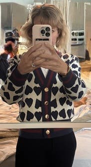 The Alexia Admor Rowan Heart Jacquard Knit Cardigan is a charming and cozy knit sweater adorned with a playful heart pattern. Button this cardigan over a black camisole and pair it with a mini skirt and tights for a sweet, casual look.