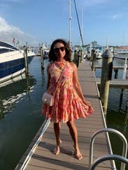 This dress is very fun, I especially love the bottom ruffle. The pattern is bold (more than I expected) but perfect for a spring day running around Key West! The top is a little loose for my short torso but still wearable!