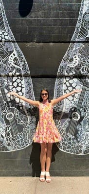 I wore this to a tropical themed night and had so much fun wearing it, I wore it again out on a date with my husband. Very cute and would definitely rent again! It fit JUST right in my chest area and then 10 maybe would’ve given me more wiggle room. If you’re larger chested and renting I would consider going up a size but the 8 did work!!!